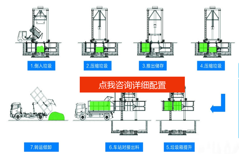 ◇設有垃圾儲存箱,適合集裝箱式散裝垃圾運輸車卸料,減少運輸費用。