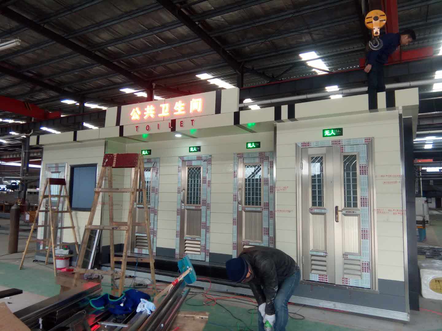1、房體結(jié)構(gòu): 采用輕鋼龍骨結(jié)構(gòu),鋼材全部使用國家標準鍍鋅鋼材。根據(jù)房體的大小特選用國標方管(50-100)焊接而成。鍍鋅管厚度為2.8mm,方管經(jīng)過除銹后進行鍍鋅、防腐處理。這樣就會延長廁所使用壽命。