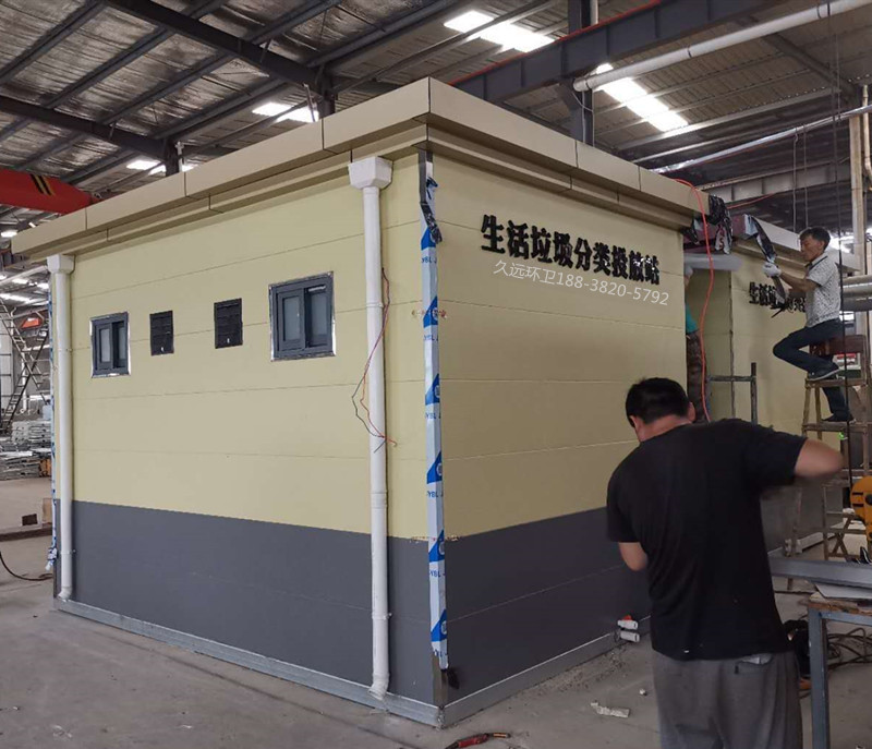 生活垃圾分類投放站廠家定制——久遠環衛是一家集研發生產、銷售服務為一體的大型環衛設備生產企業,公司注冊資金5000萬元,占地面積50余畝,擁有現代化生產車間1萬余平方米,辦公面積1000余平方米,在職員工200多人,具有雄厚的技術及生產實力。 公司主要生產垃圾壓縮中轉站、垃圾分類收集房、環保移動公廁、各類垃圾桶果皮箱、環衛工具箱、環衛道班房、崗亭、休閑座椅、等公共環衛設施。